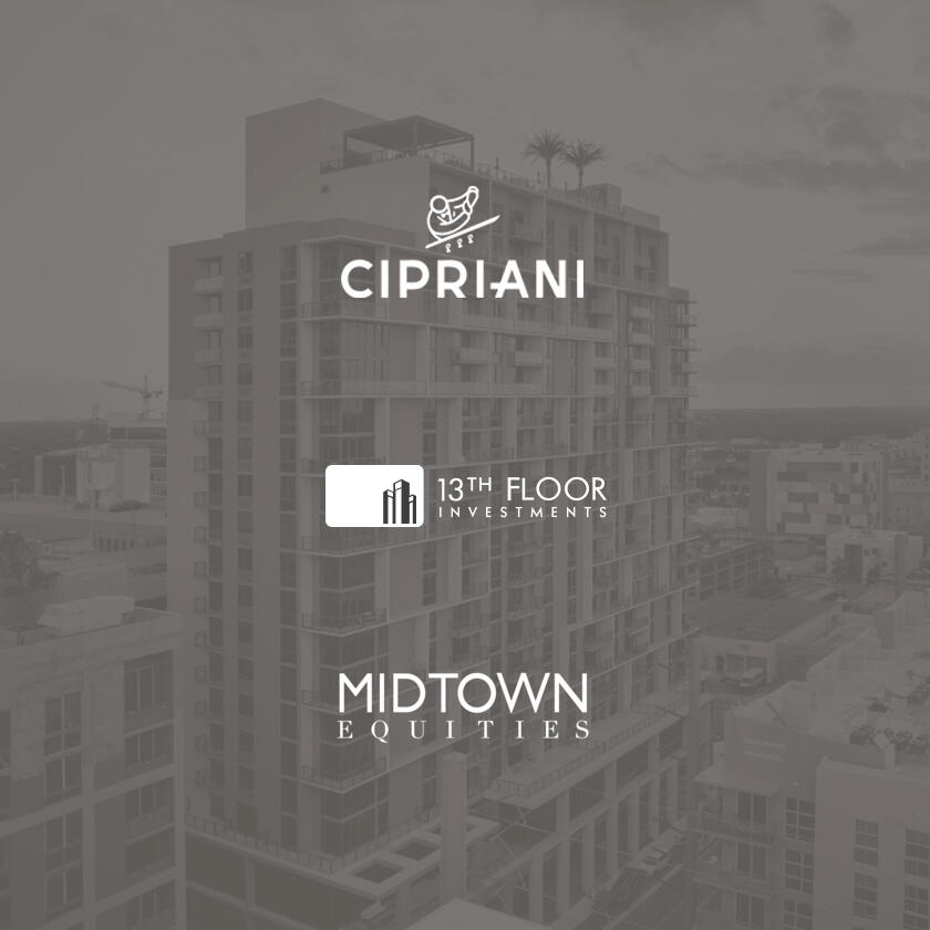 23 Residences / 17 Stories.One to Four Bedroom Configurations.Developed by Cipriani, 13th Floor Investments & Midtown Equities. Designed by Brandon Haw Architecture